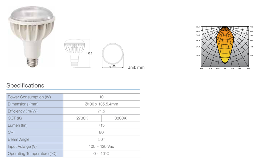 • 100~120VAC input voltage, driver inside.